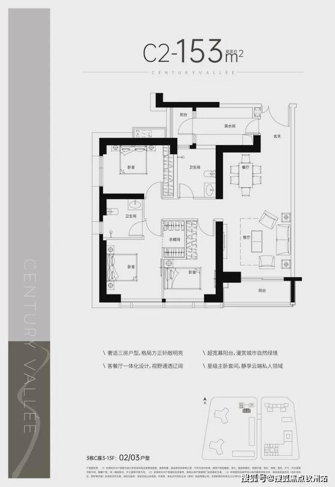项目简介:总建筑面积约39万㎡,涵盖天际住宅、高端公寓、下沉式商业街等多种业态为一体,最新推出二期3栋C座建面约131-262㎡天幕公馆、C1户型——建面约131㎡2室2厅2阳台。