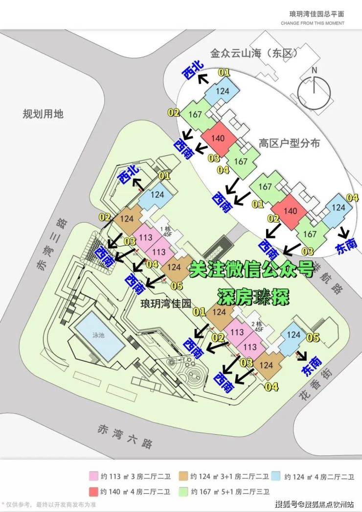 蛇口赤湾片区的「琅玥湾佳园」。该项目推出380套房源,户型为3至5房,建筑面积涵盖113-124-139-167平方米,分布在两栋塔楼中。