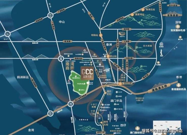 金诚中心,500米即达港珠澳大桥南湾下桥口,直面【港车北上】【澳车北上】人潮、车潮,坐享6口岸5机场3大桥4高速2城轨2大道的【海/路/空/轨/桥】多维立体交通网。