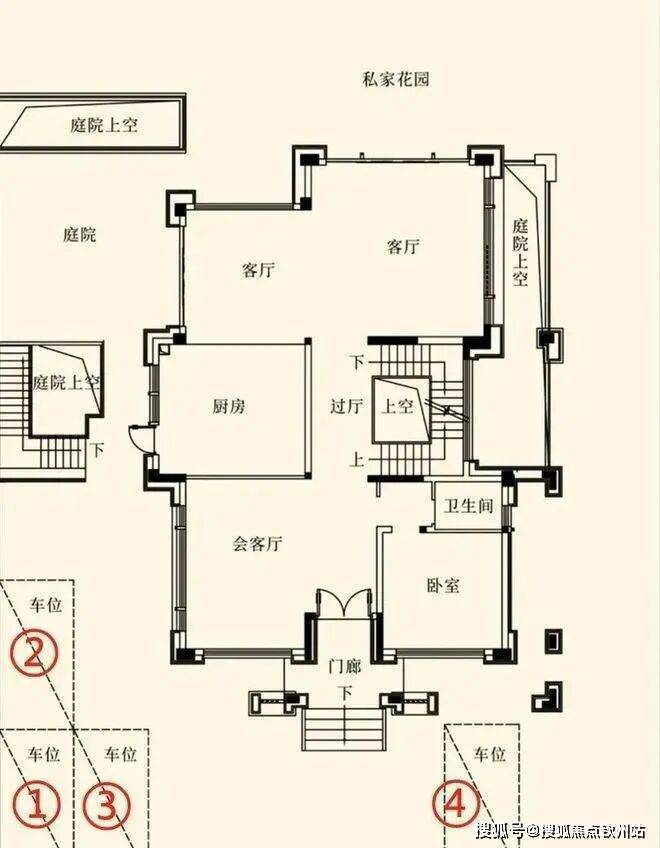 ④近360㎡奢阔私家大庭院,可随心布置亭台、假山、荷池,四时繁花相伴,绿树成荫,煮一壶好茶,寻三两旧友,在这里谈笑风生。更有4个车位可供使用,满足业主及多访客需求。