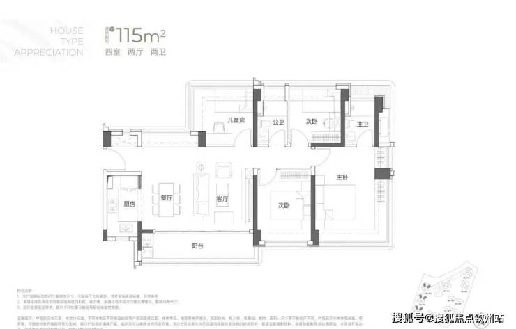 建面约115㎡4房2厅2卫