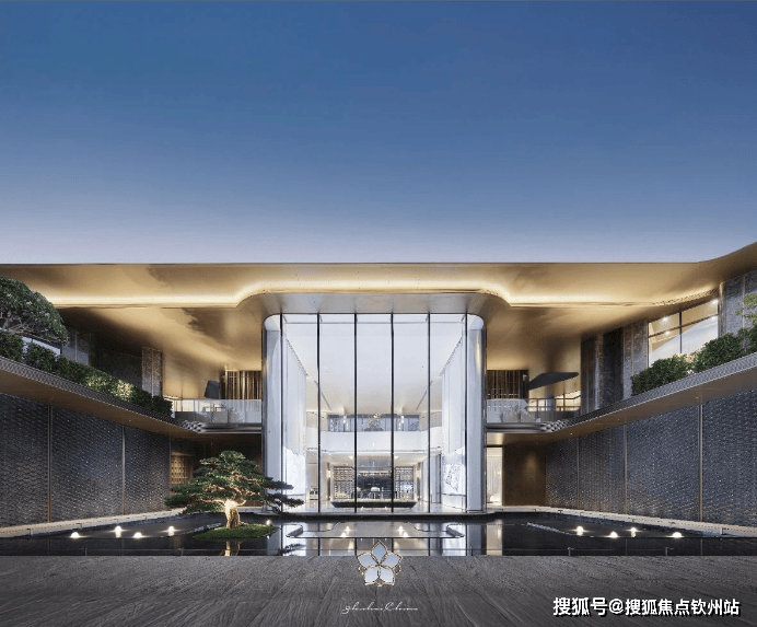 龙鳞水幕景墙,百年迎客松低调隐奢