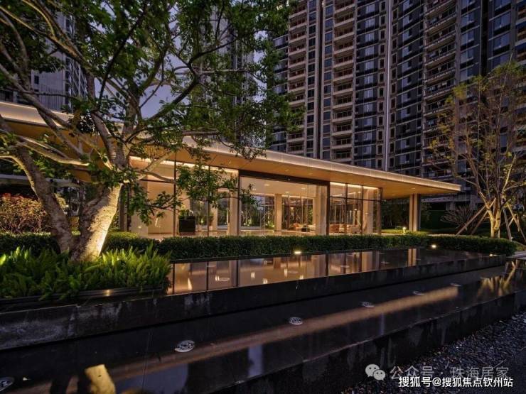 缓缓流动的海浪水景、海礁植物园、约400㎡露天泳池和背后郁郁葱葱的园林,串联而成一条高颜值的艺术中庭,非常符合当下年轻人的审美。