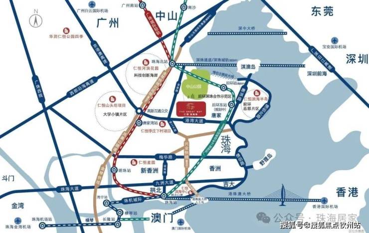 项目拥1站(珠海北站)、3轨(广珠城轨、深珠城轨、广州地铁18号线)、3桥(深珠通道、深中通道、港珠澳大桥)、2快线(兴业快线、金琴快线),湾区超级交通枢纽中心,约30分钟达前海,约1小时达白云机场。