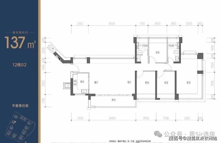 1、【绝版四房】约137㎡(四房两厅两卫):单价约5.2-5.5万,总价约711-750万