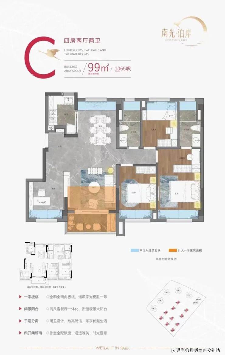 居住舒适:容积率低至 1.7,楼间距超 43 米,绿化率较高,车位充足,且为全南向社区,户户朝南,采光好。