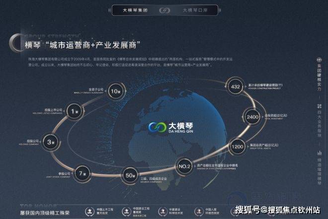 珠海大横琴集团有限公司(简称大横琴集团或集团)是珠海市国资委于2009年4月成立的直属国有企业。成立以来,大横琴集团坚守促进澳门经济适度多元发展的初心使命,是珠海国资国企践行粤澳深度合作的重要载体和骨干力量。截至目前,大横琴集团总资产超2600亿元,累计开发建设项目487个,拥有全资子公司12家、控股上市公司2家、控股公司2家、参股公司11家以及三级、四级成员企业63家。