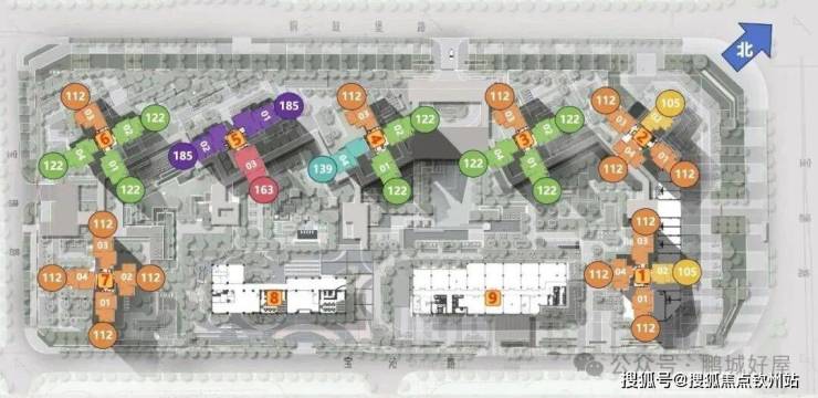 项目总占地约4.16万㎡,总建面约13.13万㎡,容积率2.2。规划7栋22-26F约634套住宅,还有一栋多层公寓和商业,配建一所幼儿园,集住宅(约7.9万㎡)、商业(约4900㎡)、单身公寓(约4900㎡)于一体。