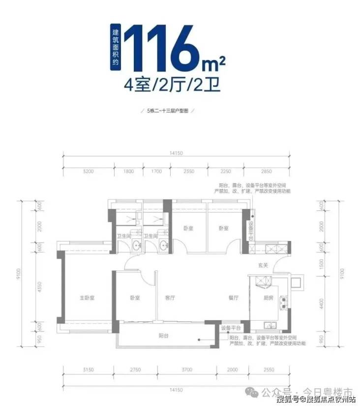 建面约116㎡四房两厅两卫