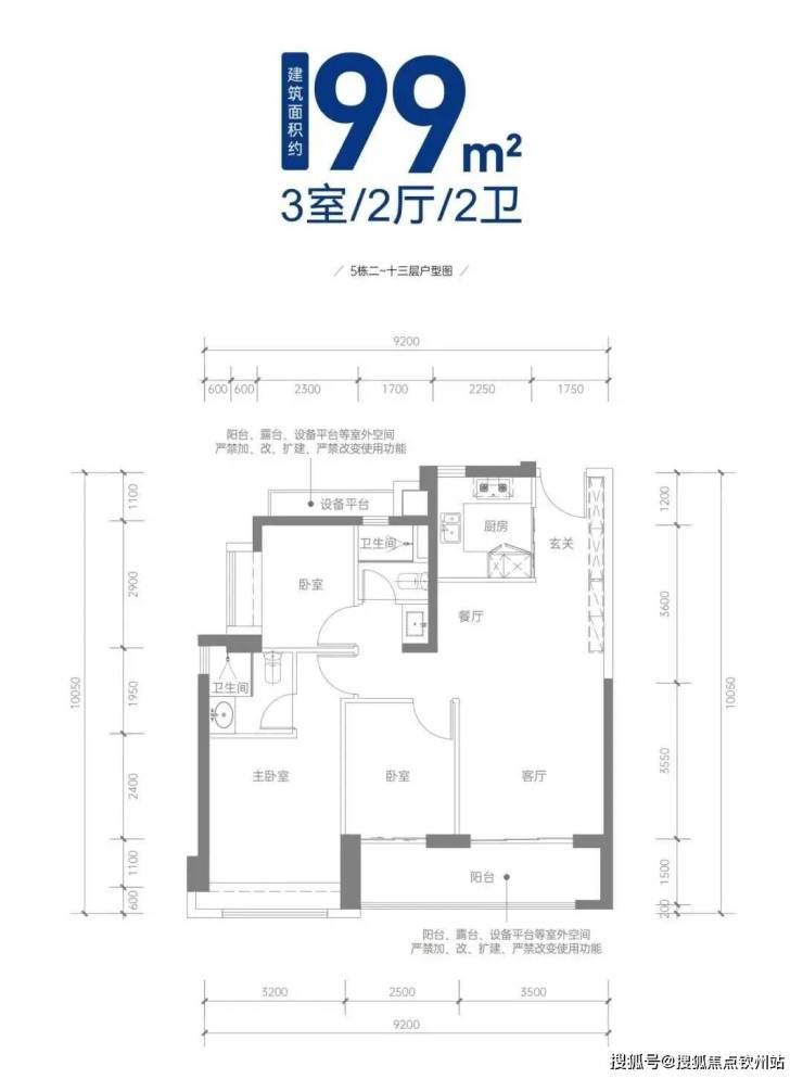 建面约99㎡三房两厅两卫