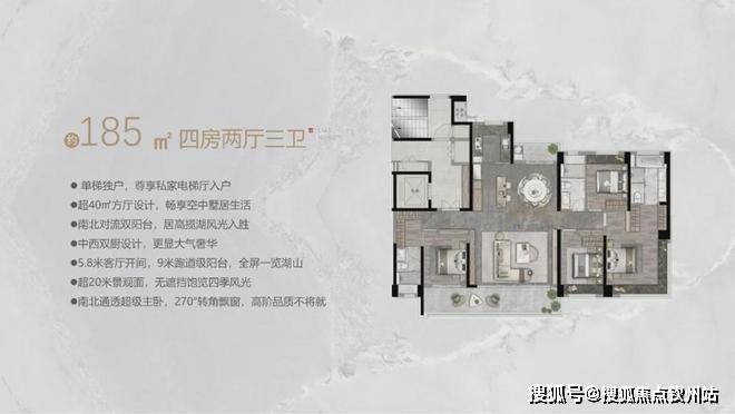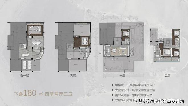 ▼户型四:叠墅下叠180m2四房两厅三卫