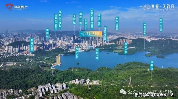 京基天韵府位于罗湖区布心太白路旁,项目原为东湖街道布心村水围村城市更新单元,总占地面积4.8万㎡,建筑面积约54.8万㎡,项目共分二期4个地块开发,其中一期是京基天韵府(在售),京基天珺府,京基天宸府,二期是京基璞誉府。