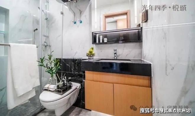 干湿分离的卫生间尺度,也比同类产品要大,且水龙头、花洒、马桶用的是TOTO (或同品牌),镜柜也是卡诺亚(或同品牌)。