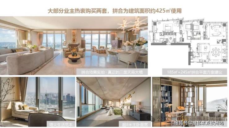 在售约185-425 ㎡云端住宅,超40%业主热衷购买两套,拼合为建筑面积约425㎡使用。