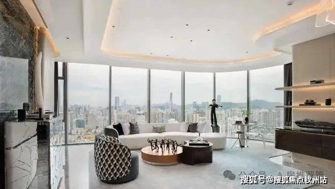 转角处曲线设计,拓宽了整个建筑界面,使得建筑拥有270°转角无柱开放式观景视野。是塔尖人群拥揽深港的极佳观景台,足以盛放您帷幄城市的雄心。