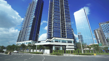 前海鸿荣源中心占地面积约5万㎡,建设用地面积约3.8万㎡,总建筑面积超34万㎡,是集办公、商业、公寓和酒店等一体开发的都市综合体。地面主要由5栋塔楼构成,包括2栋甲级办公楼、1栋国际奢华五星级酒店,以及2栋服务式公寓组成。公寓部分命名为“胤璞”,位于项目整体地块的西侧。