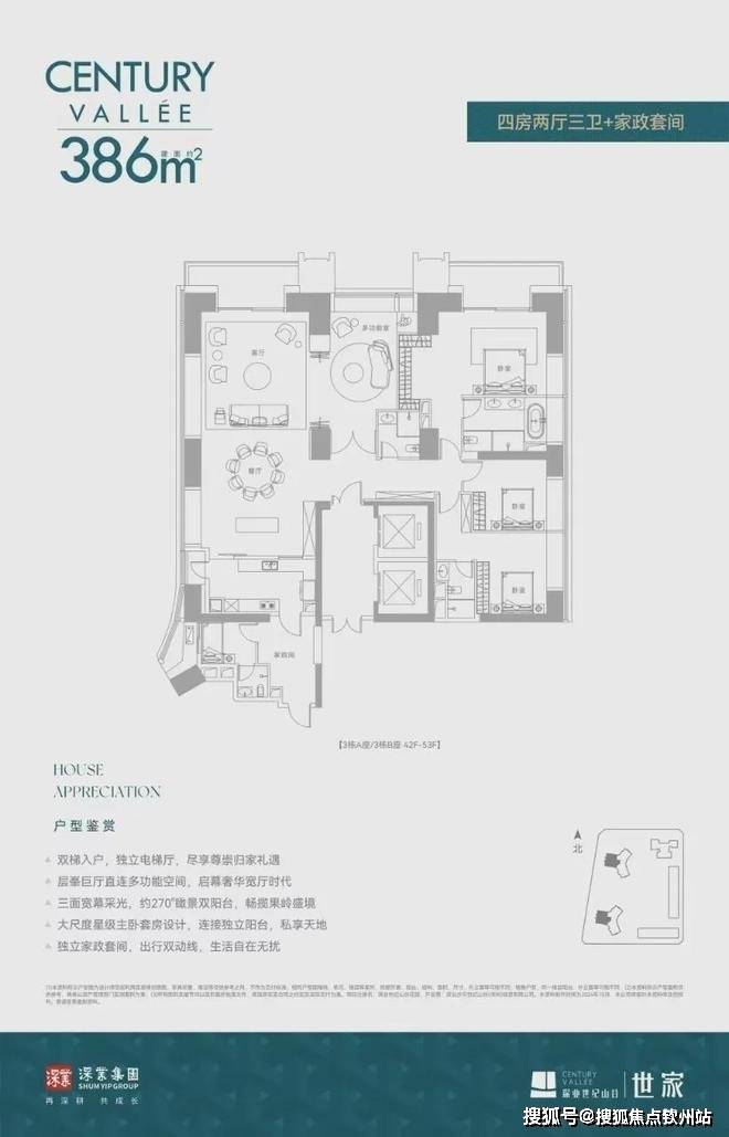 ◎约386㎡四房两厅三卫+家政套间