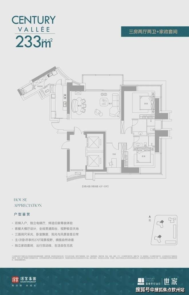 采用Y型建筑结构,尽享270°IMAX观景视野;约2400㎡主入口环岛花园等8重礼序,尊享归家礼遇;标准层8梯3户,双专梯入户,私享奢阔境遇;共9大引领级产品力,礼献深湾之巅传世之作。