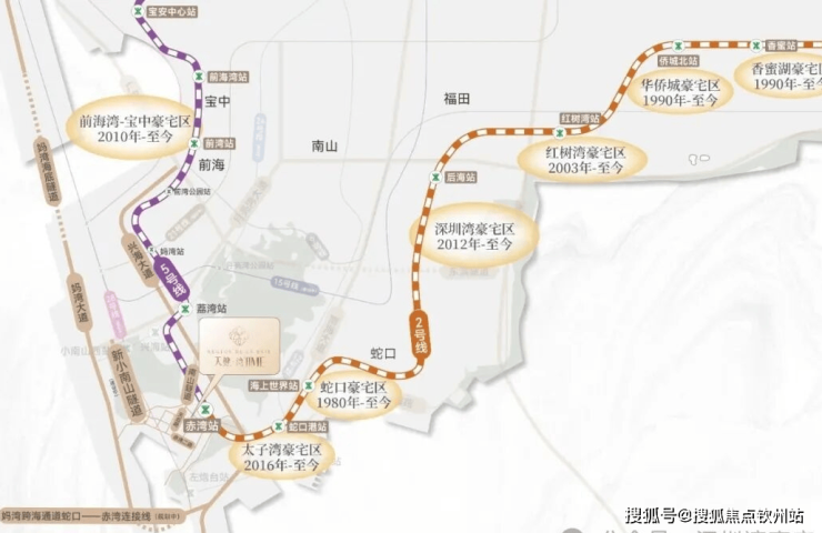 该项目紧邻赤湾站约400米,这是2号线与5号线的交汇站,通过此站可以便捷地到达前海、宝中、蛇口以及深圳湾等深圳核心区域。项目2公里范围内还有正在建设的12号线左炮台站,并且规划有未来的地铁28号线。此外,项目通过小南山隧道或港航路可以快速连接到兴海大道,从而连通前海、后海、宝中等重要区域,交通条件十分便利。