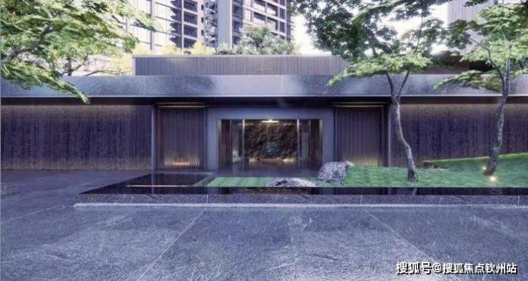 入口50米横向面宽,近6米的高跌水景墙与双层门楼营造尊贵归家仪式感,移步间穿林、见山、伴水。
