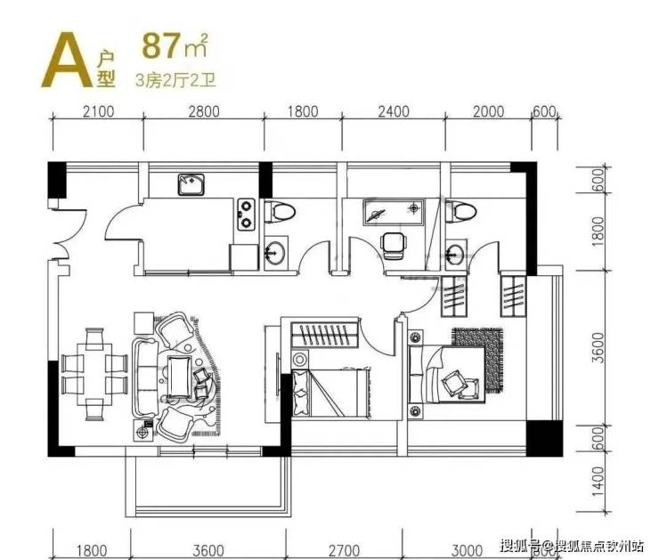约86-87㎡三房两厅两卫