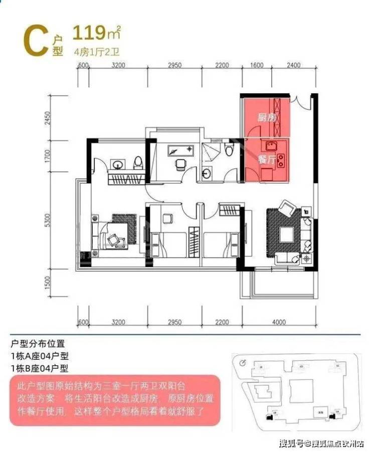 主力户型,4米客厅开间不会局促,两个相连次卧中间不是承重墙,如果不需要太多房间,可以把靠近主卧的次卧改小做成主卧书房一体化,或者相连的两个次卧空间按需设计。