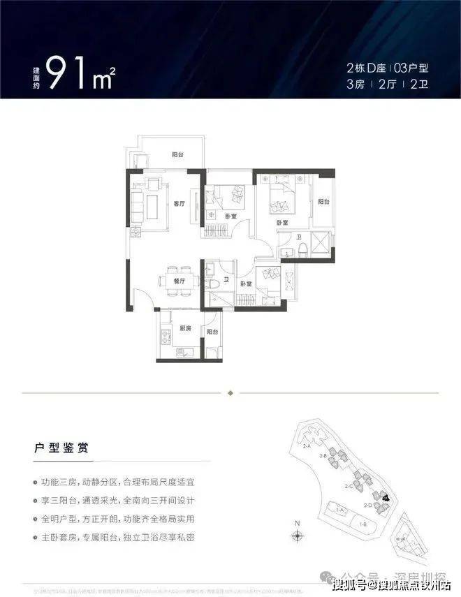 ❷91㎡3房2卫,总价308万起