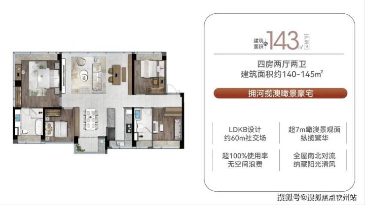 (2)143㎡四房:总价约715万元/套,单价约5.07万元/㎡;