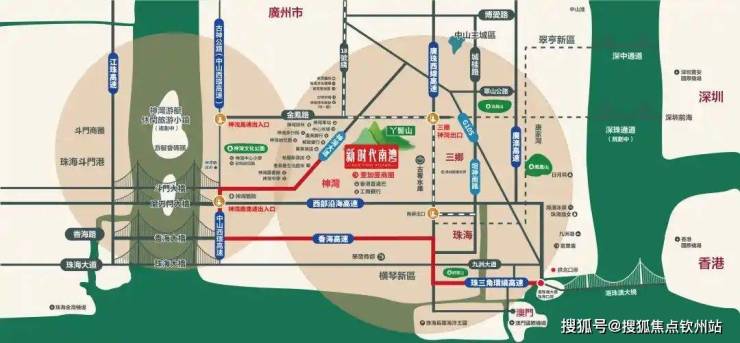 4公里接驳广珠西线高速,1小时覆盖广州、深圳、珠海主城区。