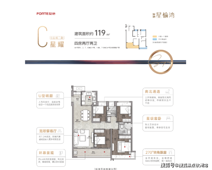 复地·星愉湾为全东南向、南北通透一字板楼布局,充分优化日照采光,双向通风有效调节室内外温差;私密性高、无遮挡视野、开窗即见景;高使用率,高性价比之选。