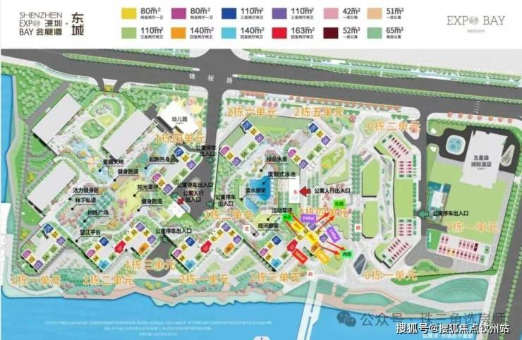 会展湾东城,3.5万㎡景观组团的五感园林,稀缺城市绿洲树阵广场,超1200m²多功能泳池,片区唯一三入户大堂,配备五星级洲际酒店的国际会所及多功能健身中心,约2万㎡的社区高端邻里集中式商业mall中心。