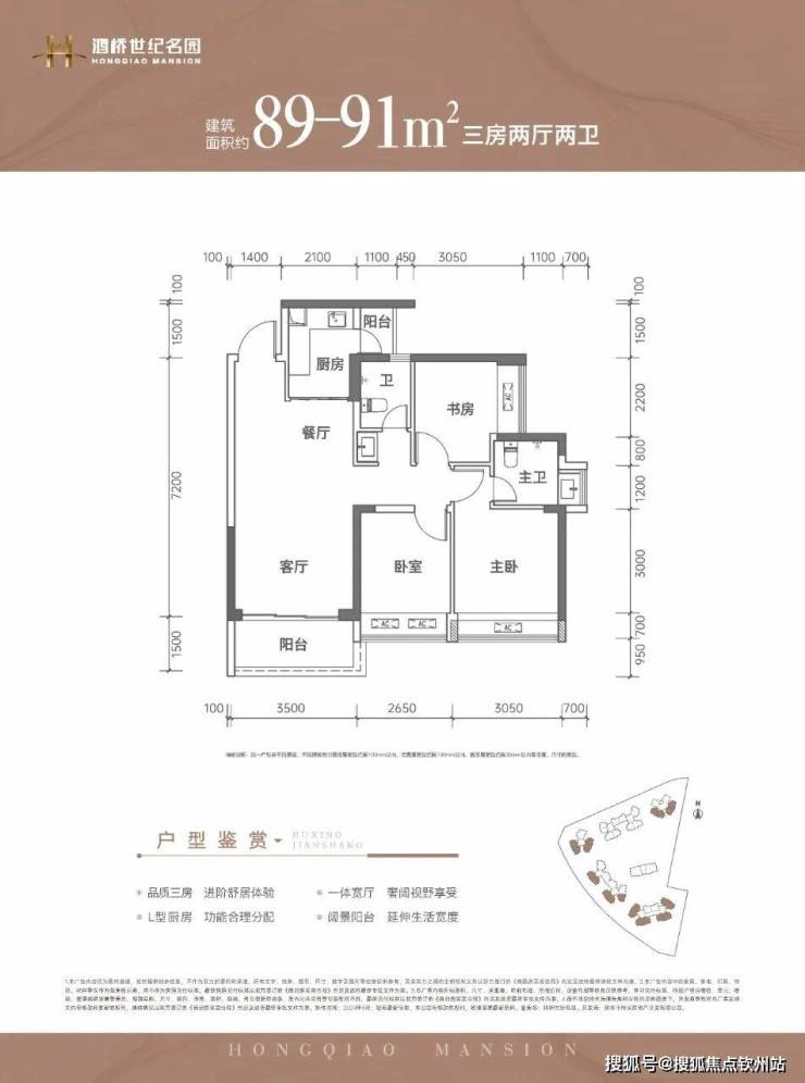 建面约89-91㎡的3房产品是主力户型。