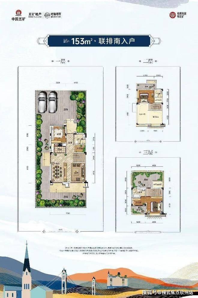 建筑面积约153㎡联排别墅户型鉴赏
