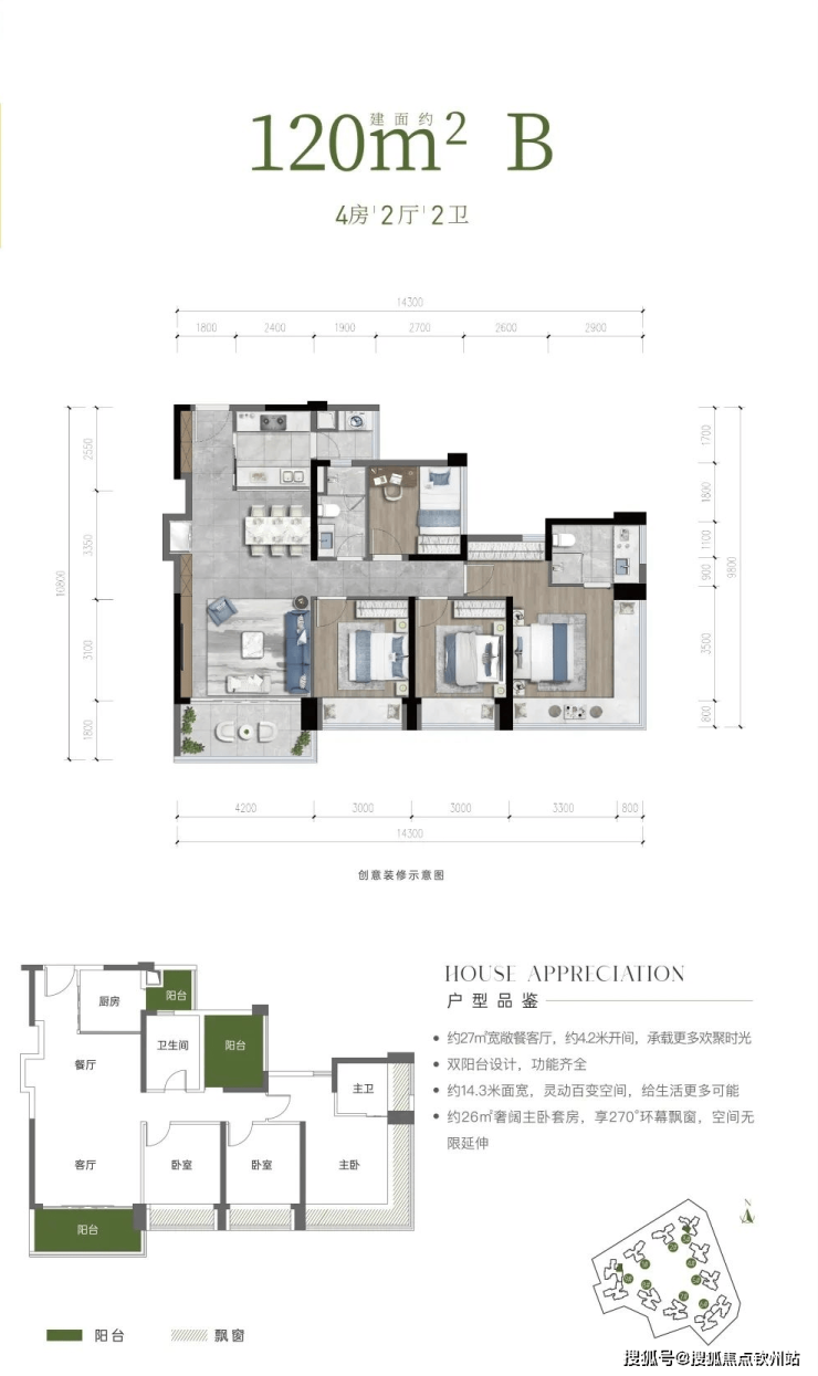 户型亮点:近 10 米采光面,百变空间,功能区随意切换