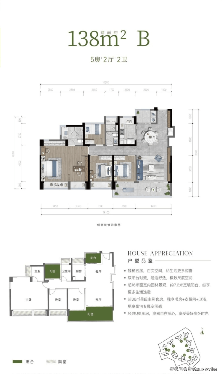 户型亮点:超16米面宽内园林景观,约 7.2 米宽境阳台