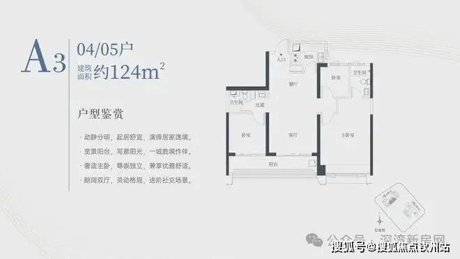 1栋一单元A3户型:面积约为124㎡