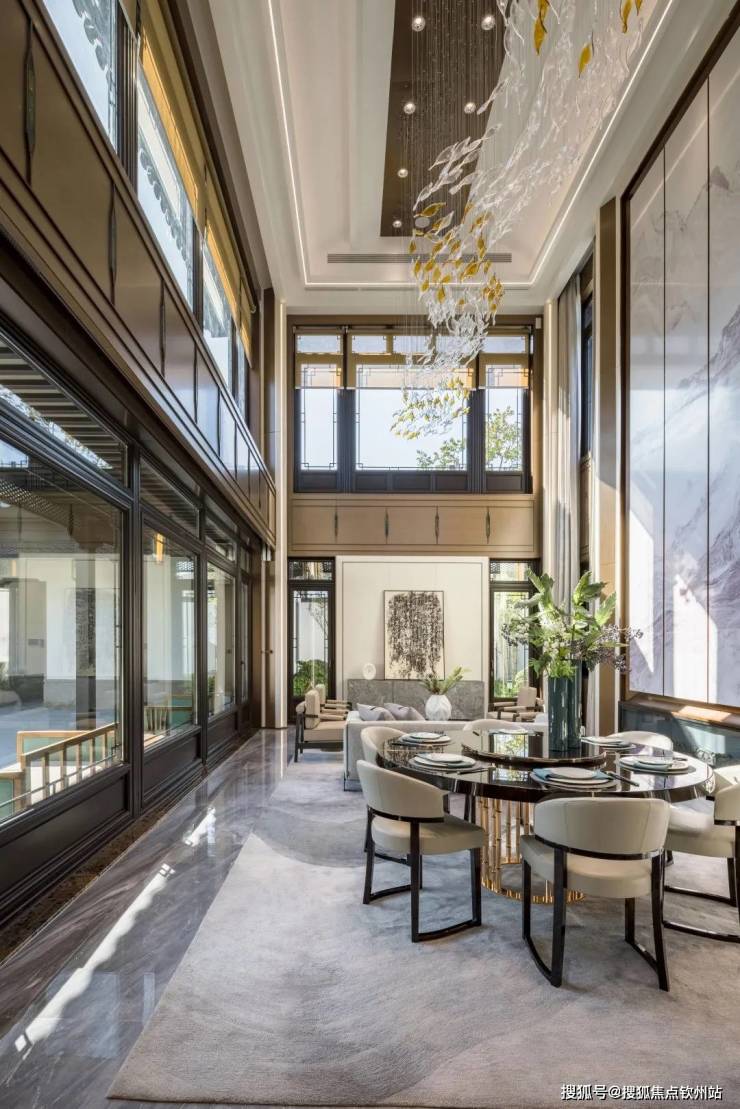 增加大量玻璃系统窗、挑檐面积、灰空间面积,防晒遮阳,空间少梁化,双层地下挑高会客厅,中式美观与人居实用并举。