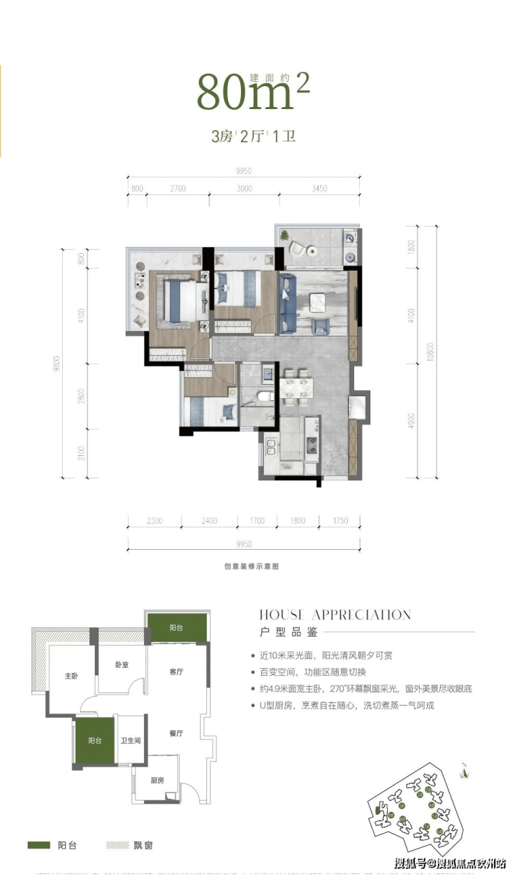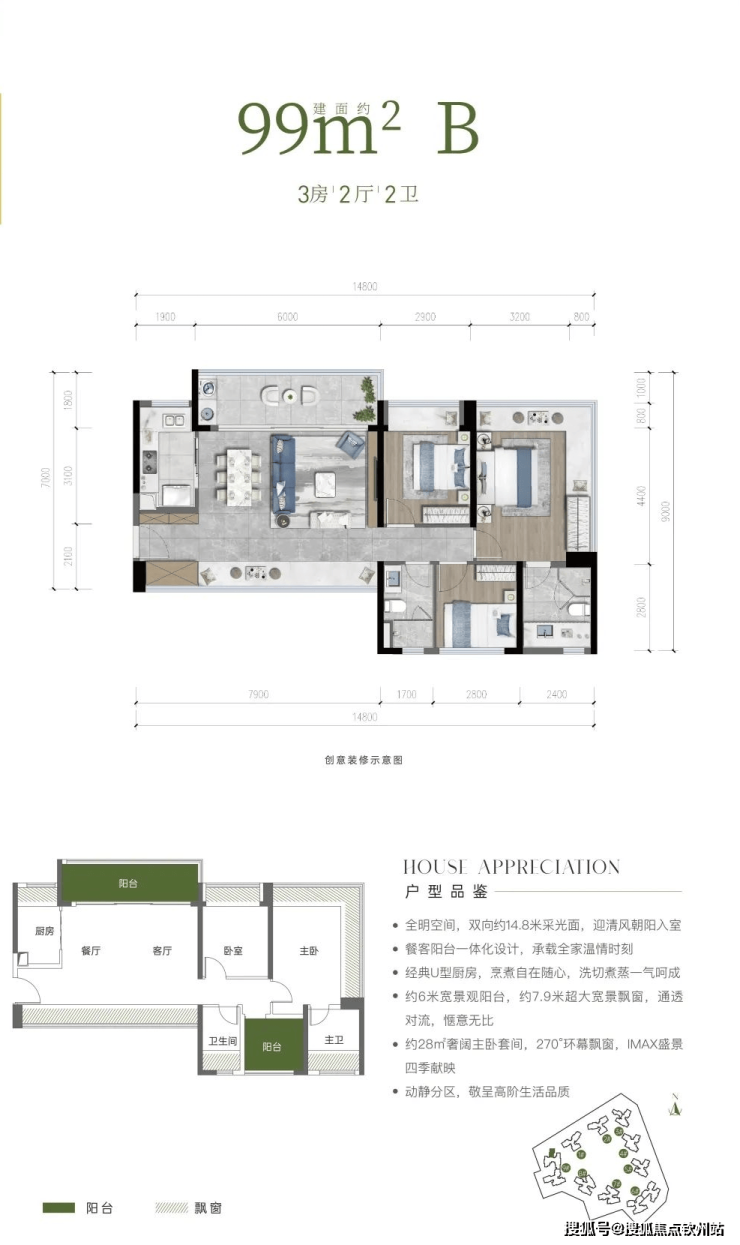户型亮点:近 10 米采光面,百变空间,功能区随意切换