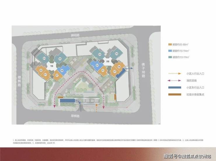 【产品户型】:建筑面积约85-88m²三房两卫、建筑面积约110-114m²四房两卫、建筑面积约113-119㎡四房两卫