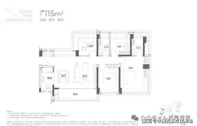 建面约115㎡4房2厅2卫