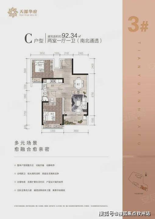 户型产品为:92-185㎡ 2-4房户型涵盖了刚需和改善产品