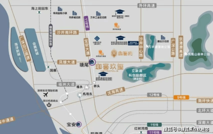 沙井是宝安西部智造 + 海洋新城双核,承接前海、宝中产业与人口外溢,11 号线 30 分钟直达福田,西部刚需 / 刚改首选。