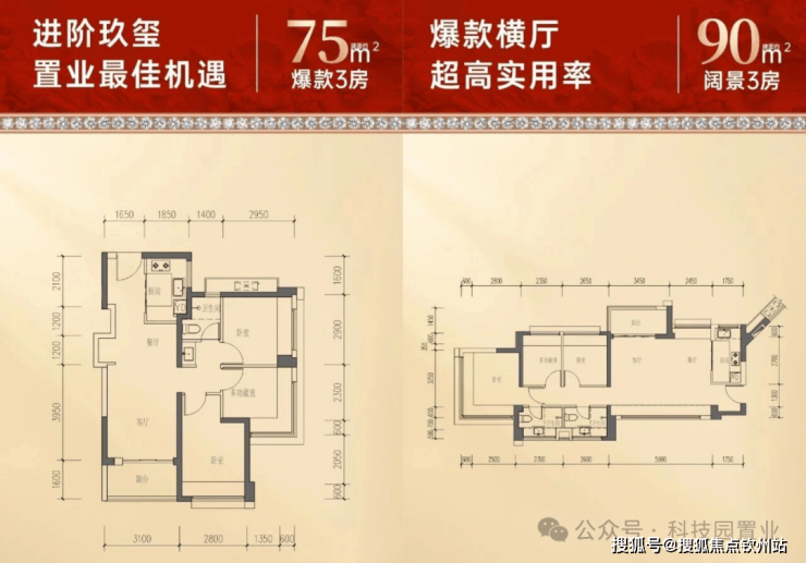 主力75-97㎡3 房、110-199㎡4 房,含赠送得房率85%-95%;75㎡做标准三房,空间利用率高,部分飘窗可打掉拓展。