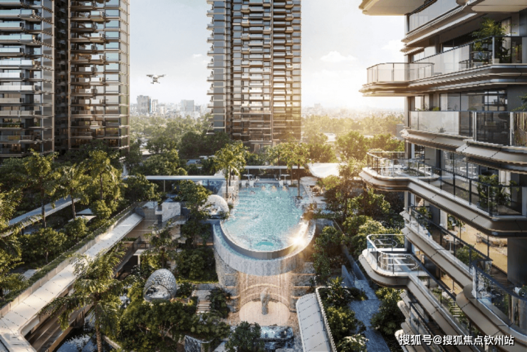 和新加坡樟宜机场同款热带雨林景观,8.6米飞瀑造景垂直立体园林融入约绿化率达约35% 。