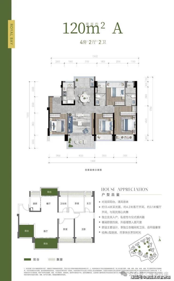 户型亮点:奢阔舒居四房,舒适主套设计,享独立衣帽间和卫浴