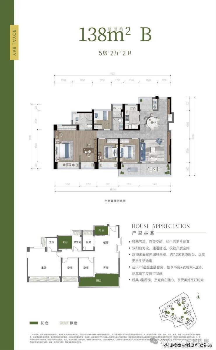 户型亮点:约 38 ㎡星级主卧套间,奢享 270°环幕飘窗、酒店式衣帽间+主卫