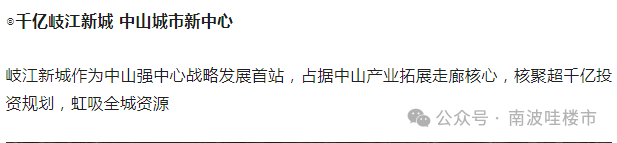 •交通枢纽| 3纵2横1地铁、双城轨外联内通,直达广州,约400m(直线距离)即达岐江城地铁站 (在建中),近距中山站、中山北站两大站点