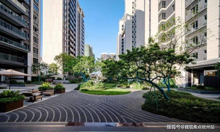 兴格·芳邻打造一条约220米景观中轴贯穿社区,以中轴串联起各个景观节点,给予业主既尊崇有序,又自由灵动的园林休闲体验。