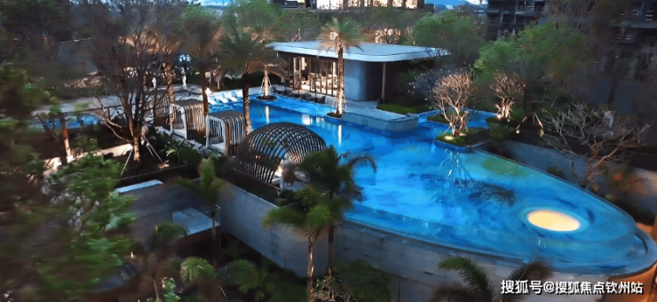约700㎡的游艇造型的无边际星空泳池,船头采用逾百万定制的透明亚克力无边际观景池畔,能够实现270°俯瞰立体雨林绿谷景观。