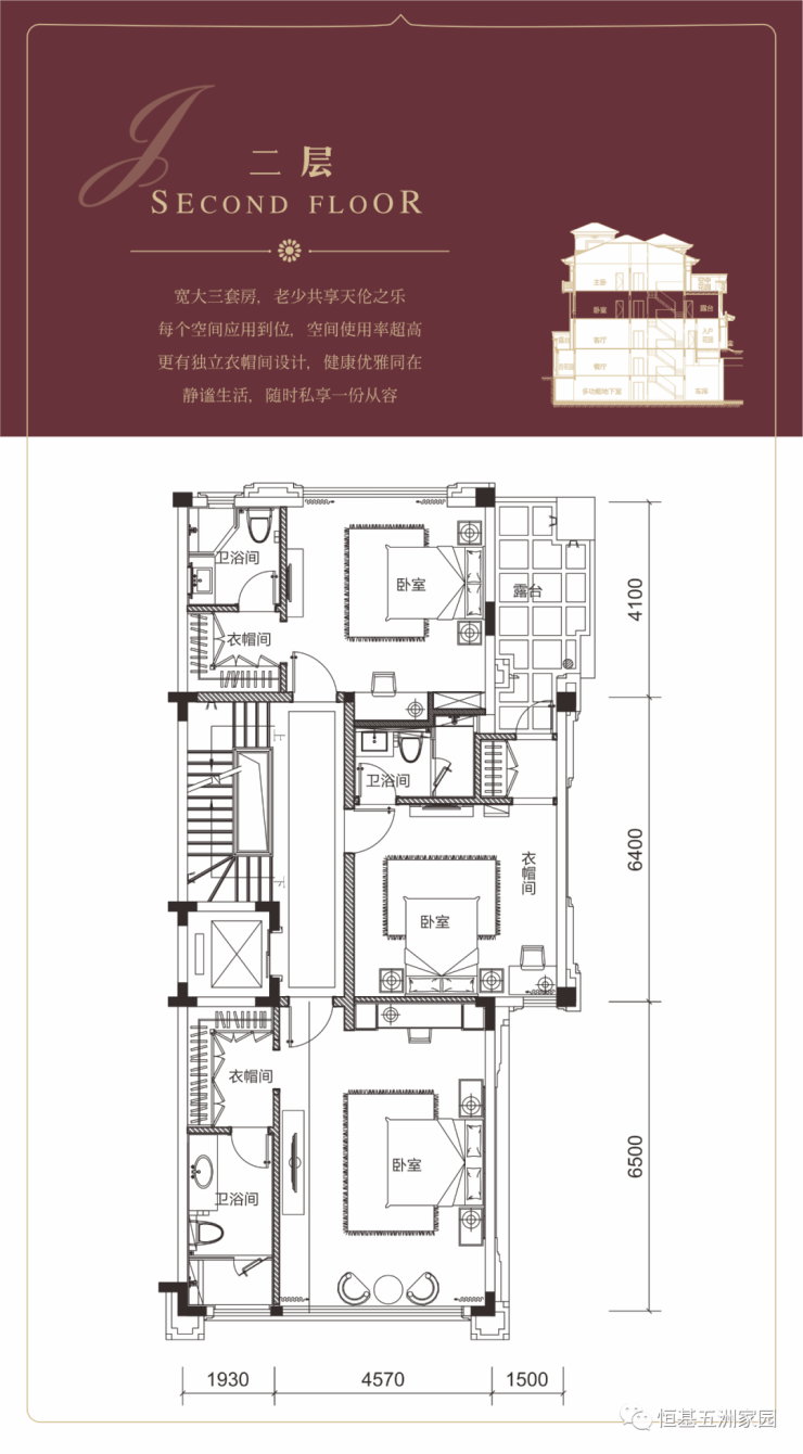 全星级套房设计,每间卧室均设有独立衣帽、卫浴空间,分层多厅布局,使家庭相聚、商务接待可在不同的楼层空间中同时进行,互不干扰。
